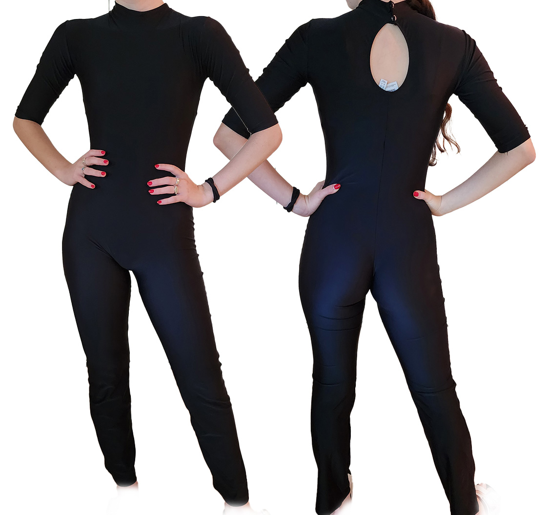 אוברול לייקרה שחור גולף שרוול עד המרפק מתאים לחטיבה תיכון