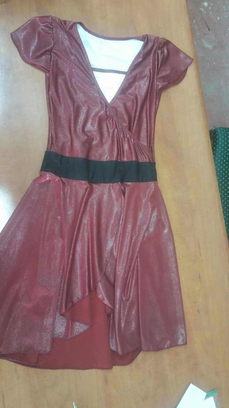 מק״ט D3003 שמלה אדומה מבריקה עם חגורה שחורה מתאים לגילאי חטיבה 20כמות
