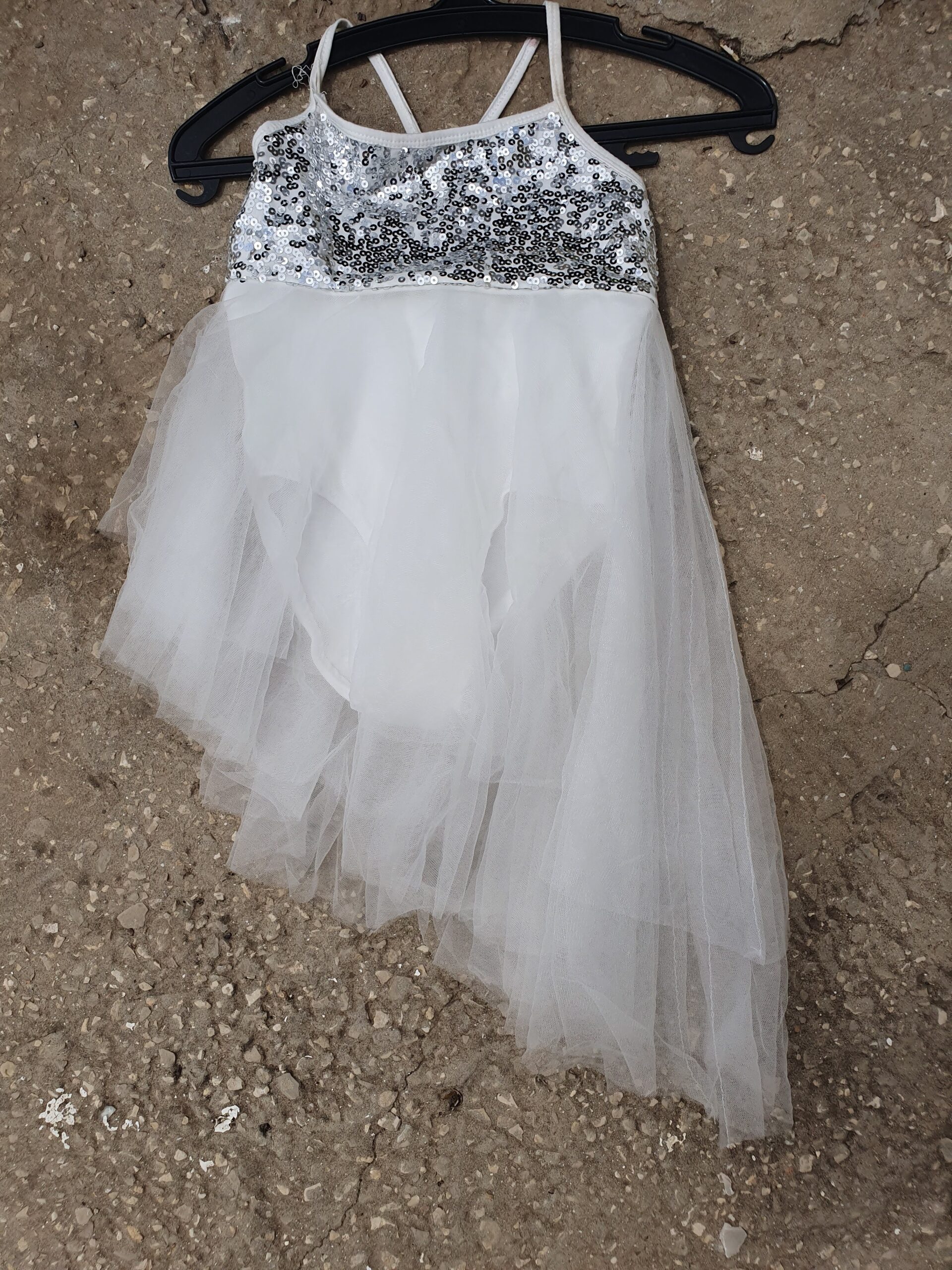 מק״ט K9001 מלת שיפון לבנה עם פייטים לגילאי 5-א׳ (זה נראה מעאפן בתמונה אבל מהמם על הבמה) כמות 30